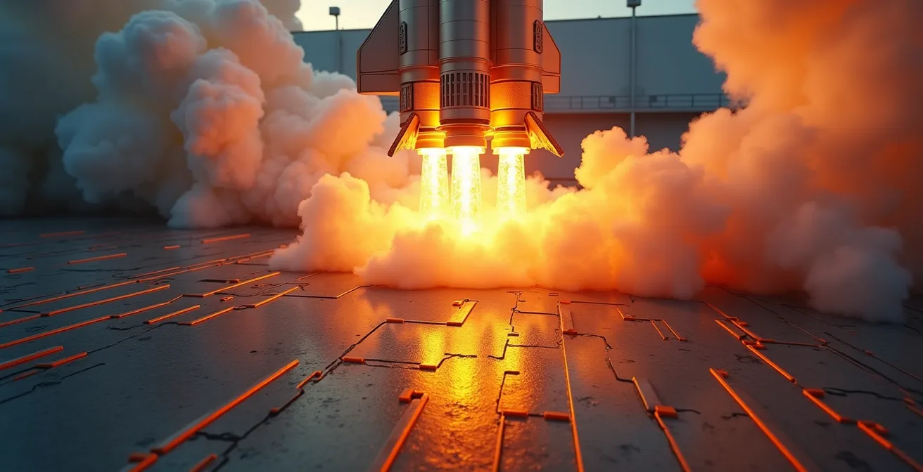 Cette approche confond la cause et la conséquence. La vitesse n’est pas une stratégie en soi ; elle est le résultat d’une ingénierie parfaite. Une Formule 1 atteint 300 km/h non pas parce que le pilote appuie fort sur l’accélérateur, mais parce que son châssis est rigide, son aérodynamisme optimisé et son moteur capable de supporter une telle charge. Pour une startup, c’est la même chose. La croissance explosive est la conséquence visible d’une adéquation produit-marché (PMF) solide, d’une économie d’acquisition viable et de boucles de croissance intégrées au produit. Oublier ces fondamentaux, c’est construire un véhicule de croissance instable, destiné à se désintégrer à la première accélération.